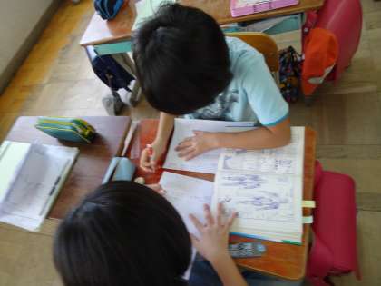 本やPCを使って,動物の動きと骨や筋肉の働きを関係付けて調べました。