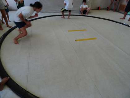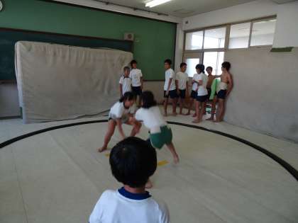 相撲部に入っていない子どもたちを対象に,伏見中学校で活動しました。