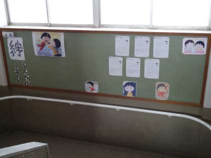 西校舎1階から2階の踊り場の掲示板です。信頼することの大切さについて子どもたちの考えが掲示されています。