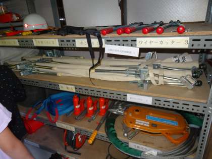 器具庫の中で,道具の使い方や地域の安全を守るための具体的な取組や努力,工夫について教わりました。