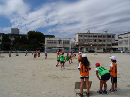 有利な場所への動きやパスを工夫しながら,相手チームに挑戦して楽しんでいます。