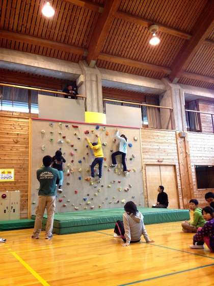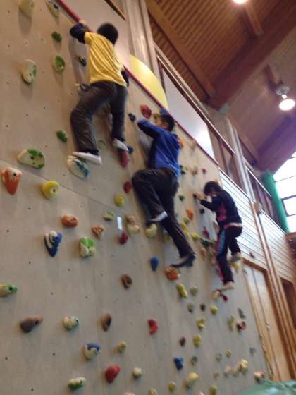 壁につけられたでっぱりをうまく使いながら登っていきます。
