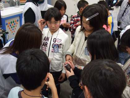 二条城の近くにあるNHK京都放送局で,「NHK放送体験クラブ」の放送番組作りの体験を行いました。これは,国語〈工夫して発信しよう〉・社会〈情報と社会〉・総合〈地域学習・環境学習〉をリンクさせての学習でした。