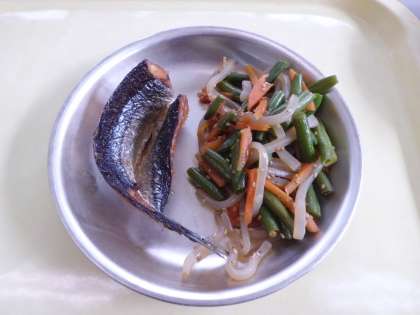 開き干し秋刀魚のから揚げ 野菜のきんぴら