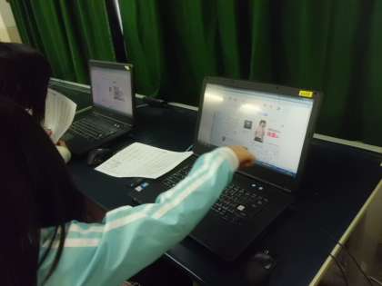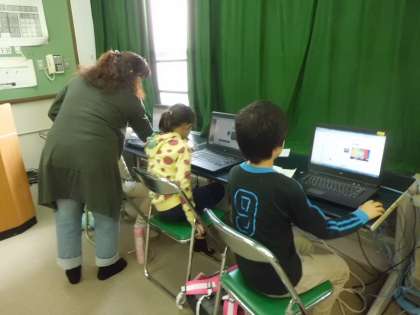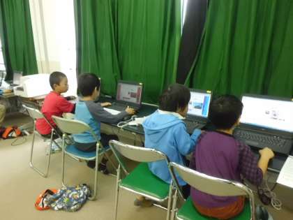 土曜学習終了後,パソコン教室がありました。1〜2年生の抽選で選ばれた19名がローマ字で入力しています。