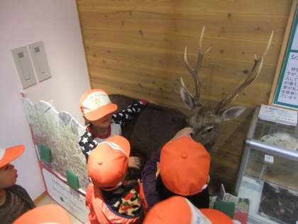 所内について,松ぼっくりやどんぐりの話を聞き,博物館を見学しました。