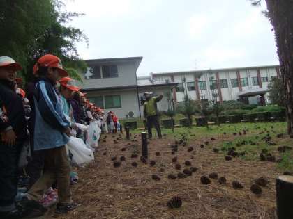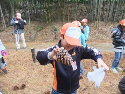 お話を聞いた後に,森林研究所内にあるどんぐりや,まつぼっくり,葉っぱなど自然の宝物を拾いに行きました。