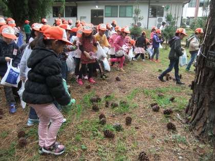 学校や,近くの公園にはないような大きなまつぼっくりに驚きの声があがっていました。