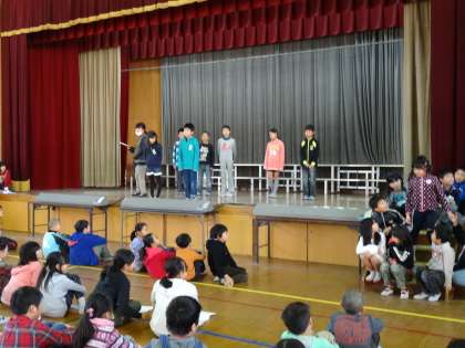 学芸会に向けての練習を始めました。立ち位置や登場シーンの確認をしました。