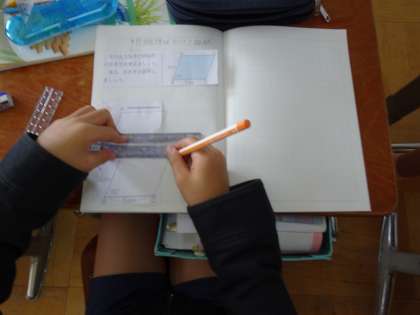 三角定規やコンパスを使って,平行四辺形を作図しました。