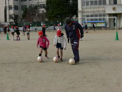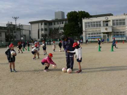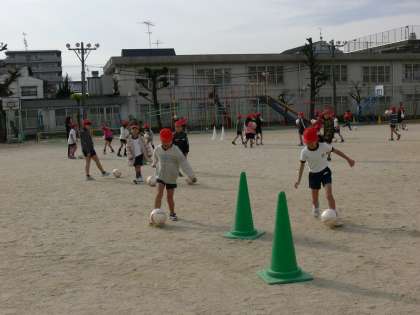 いろいろな遊びを通して,体を動かす楽しさや,仲間作りを行うことなどをサンガのコーチに教えていただきました。とっても楽しい2時間でした。
