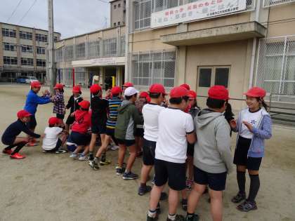 クラス対抗ハイタッチゲームです。作戦を考えて,対戦しました。