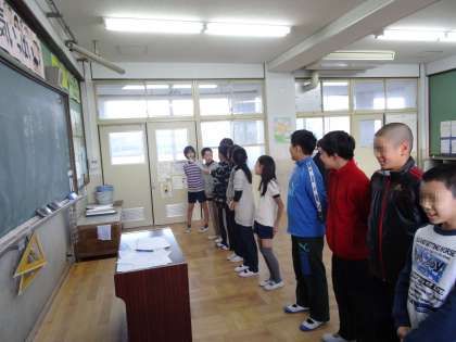 大なわ大会に向けての流れの確認やルール説明の練習をしました。