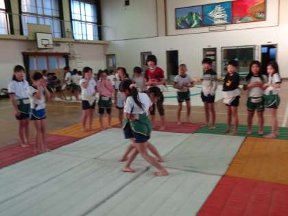 新年初めての稽古です。寒い中ですが,友達とどんどん相撲を取りました。