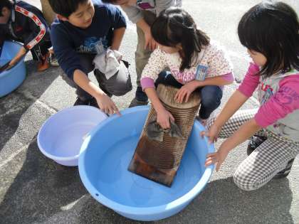 社会科「昔を伝えるもの」の授業で洗濯板体験を行いました。予想した洗濯板の使い方で実際に洗ってみて、上手に洗えるか試してみました。また、洗濯板の本当の使い方を教えてもらい、子どもたちは熱心に洗っていました。