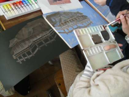「京都の神社や仏閣」をテーマに版画に取り組んでいます。作品が出来上がるのが楽しみです。