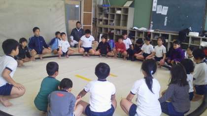 土曜学習終了後,中学校で汗を流しました。短時間ですが,力いっぱい相撲を取りました。