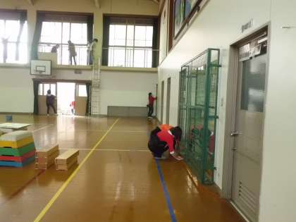 2日(日)午後1時よりPTAとおやじの会の多数の方々にお世話になり,体育館清掃をしていただきました。3月に卒業式を控え,天井から床まで塵や埃をしっかり落としピカピカになりました。ほんとうにありがとうございました。