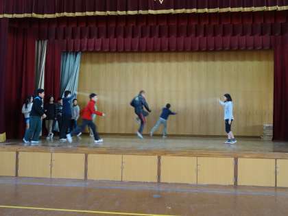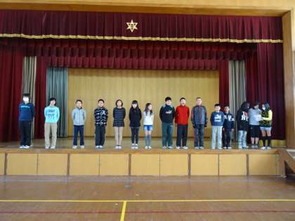 大なわ大会に向けての流れやルール説明の練習を体育館で行いました。