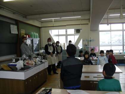 3年生では総合の学習でだしのちがいを知ろう体験をしました。食育指導員さんに来ていただき、こんぶとかつおを使った本格的な日本料理のお出汁をつくっていただき、子どもたちはお出汁の味を比べたり香りをかいだりして、日本の伝統的な味を体験しました。