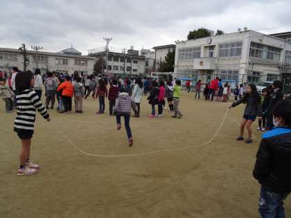 たてわりグループごとに大なわ大会に向けて見通しをもち,早速練習を始めました。