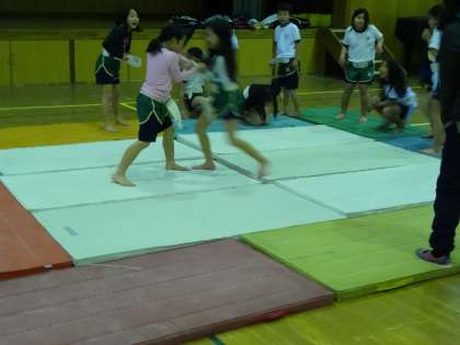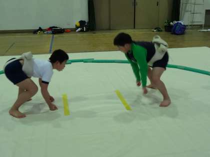 雪の日で厳しい寒さでしたが,寒さに負けずに全力で相撲を取っていました。