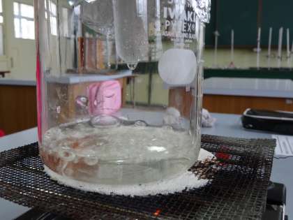 ビーカーの中に物を近づけて,水滴が付く様子を確認しました。
