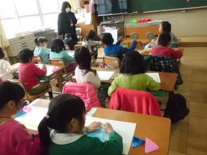 歌を歌って踊りました。折り紙で花を折ったり,お絵描きをしたりもしました。