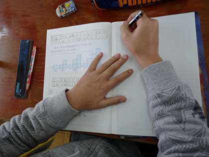 増加が一定の関係を表に書いて調べ,きまりを考えて説明しました。