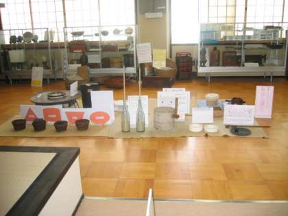 昔の古い道具などが展示してあります。普段は,中に入ることはできませんが社会の学習などで中に入ることができます。