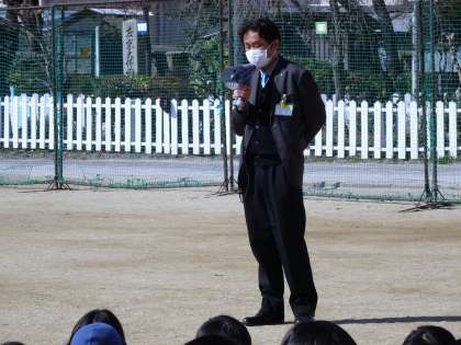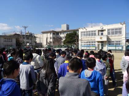 また,訓練の後,「東日本大震災」の被災者の方々に対し,哀悼の意を捧げる「黙とう」を全校一斉に行いました。