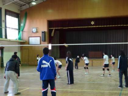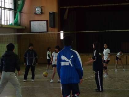 今年度最後のバレーボール部の活動です。教職員と6年生で対戦をしました。
