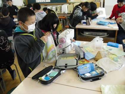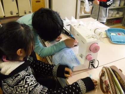 ミシンの練習をしたり,ぞうきんを縫ったりしています。