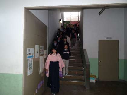 入場開始直前の様子です。6年生が教室から出てきました。