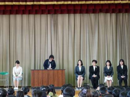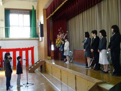 着任者代表のあいさつの後,6年生児童からお迎えの言葉がありました。