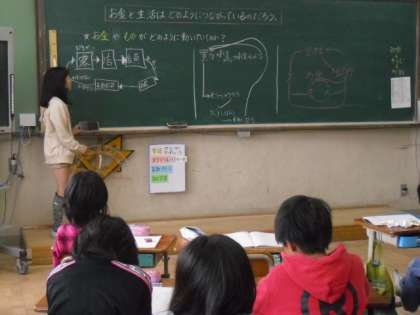 今日は,図を見ながら考えたり,話し合いをしたりしたりしながら「お金と社会はどのようにつながっているのか」を学習しました。