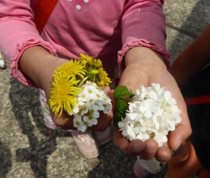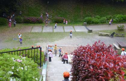北堀公園で春を見つけました。「こんなお花を見つけたよ」「お花によって匂いがちがうんだよ」と目・耳・鼻で春を感じました。また,季節が変わって来てみると,新しい発見ができそうです。