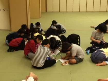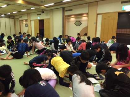 反省会です。一日を振り返り,心に残ったことを言葉にして残しています。さて,どんなことが印象に残ったのでしょうか。