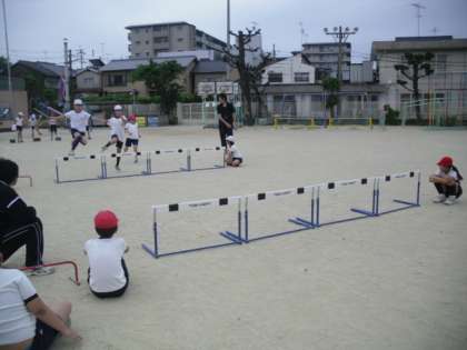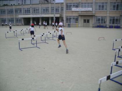 5年生になって初めてのハードル走をしました。練習を通して,3歩のリズムで走れるインターバルをみつけていきましょう。