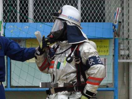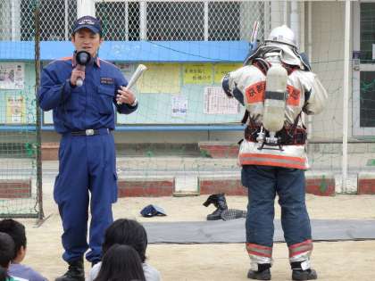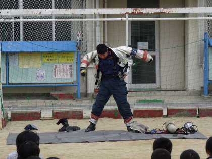 消防士さんがどのような服を着て,どんな仕事をされるか学びました。