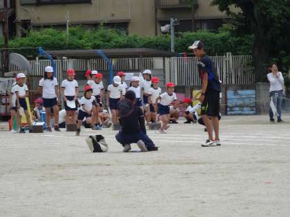 初めてのハードル走ですが,リズムよくまたぎ越せるように頑張りました。
