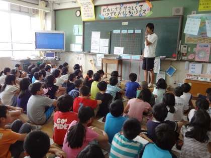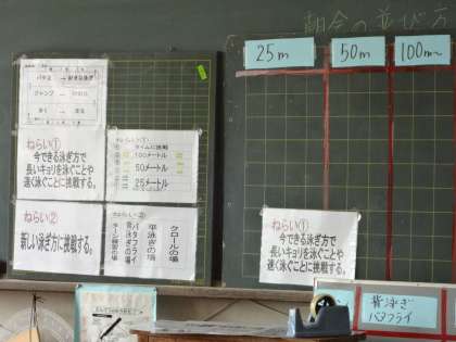 今年度の水泳学習が始まりました。初日の今日は,5年生の水泳学習のめあてや学習の進め方を確認しました。そして,今できる泳ぎ方で泳ぎました。