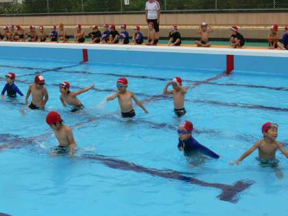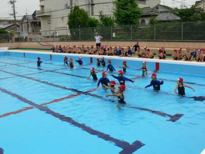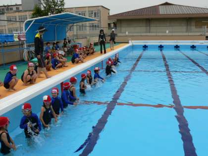 2回目のみずあそびの学習です。少し寒かったようですが,入水の約束や,水慣れの仕方を学習しました。