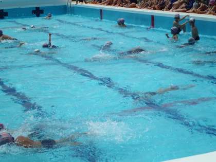 2年生のみずあそびは,いろいろな浮き方や潜り方を楽しんだり,できる泳ぎ方で長い距離を泳ぐことに挑戦したりしています。