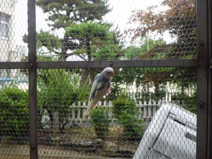 小鳥がいなくなった鳥小屋に4羽のセキセイインコがやってきました。