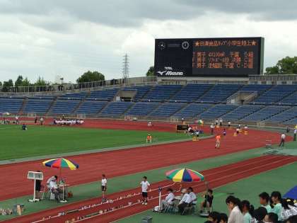 7月6日(日)西京極陸上競技場で日清食品カップがあり,5・6年生14名が参加しました。午後からは雨が降る天気となってしまいましたが,みんな自分の力を精一杯発揮していました。