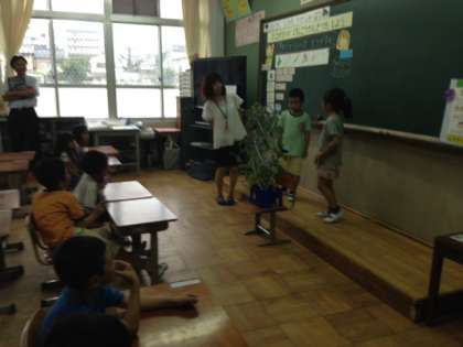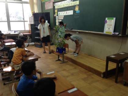 1年生は自分のあさがおを毎日一生懸命に観察しています。昨日との違いを見つけています。
