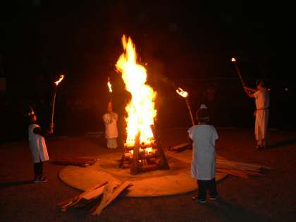 点火式です。火の神ゴッドファイヤーがやってきました。