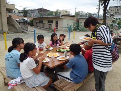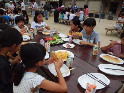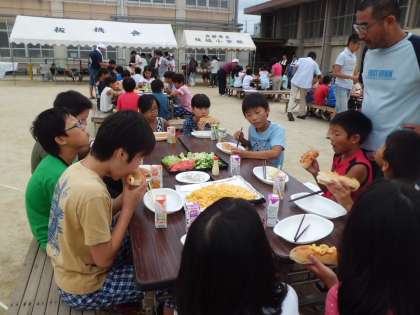 パンにスクランブルエッグ,ベーコン,ウィンナー,トマト,きゅうり,レタスなど