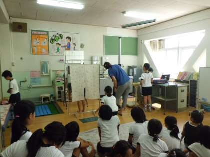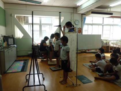 今日は3年生の身体計測です。夏休みが明けてたくましい体になっています。
